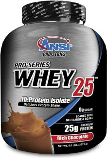 ANSI Pro Series Whey 25 is a premium whey protein blend consisting of whey protein concentrate and whey protein isolate. ANSI Pro Series Whey 25 is a low carb, low sugar protein powder that mixes instantly.