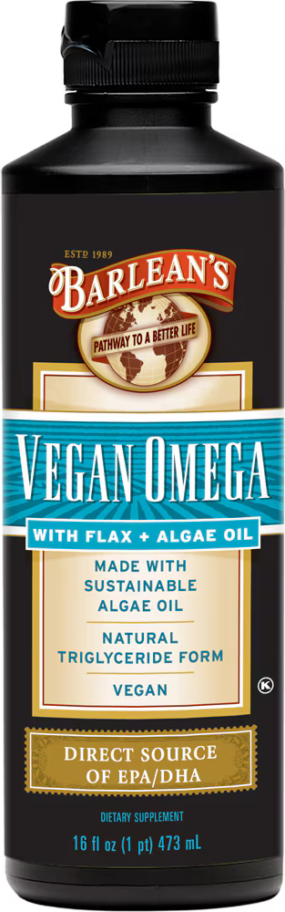 This blend of fresh algae oil and our famous, cold-pressed flax oil is a unique take on a plant-based Omega-3 oil supplement, and one well worth using. Algae oil is the only direct, vegan source of EPA and DHA, nutrients that are essential for all but difficult to obtain. When land and see come together, they create a powerful Omega-3 oil blend perfect for plant-based eaters. The DHA levels in algae oil combined with the support of ALA Omega-3s in flax oil make for an ultra-effective way to support cardiovascular health, cognitive function and overall well-being.
