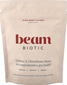 Everything starts in the gut. I made a conscious effort to remove toxins from my life and daily routine to start feeling better, clearer, and more like myself. That meant making major changes on a foundational level, so I partnered with Beam to create a product that made it simple. I love that Beam Biotic takes a comprehensive approach to gut health, immune function, and detoxification. Plus, it supports healthy skin!