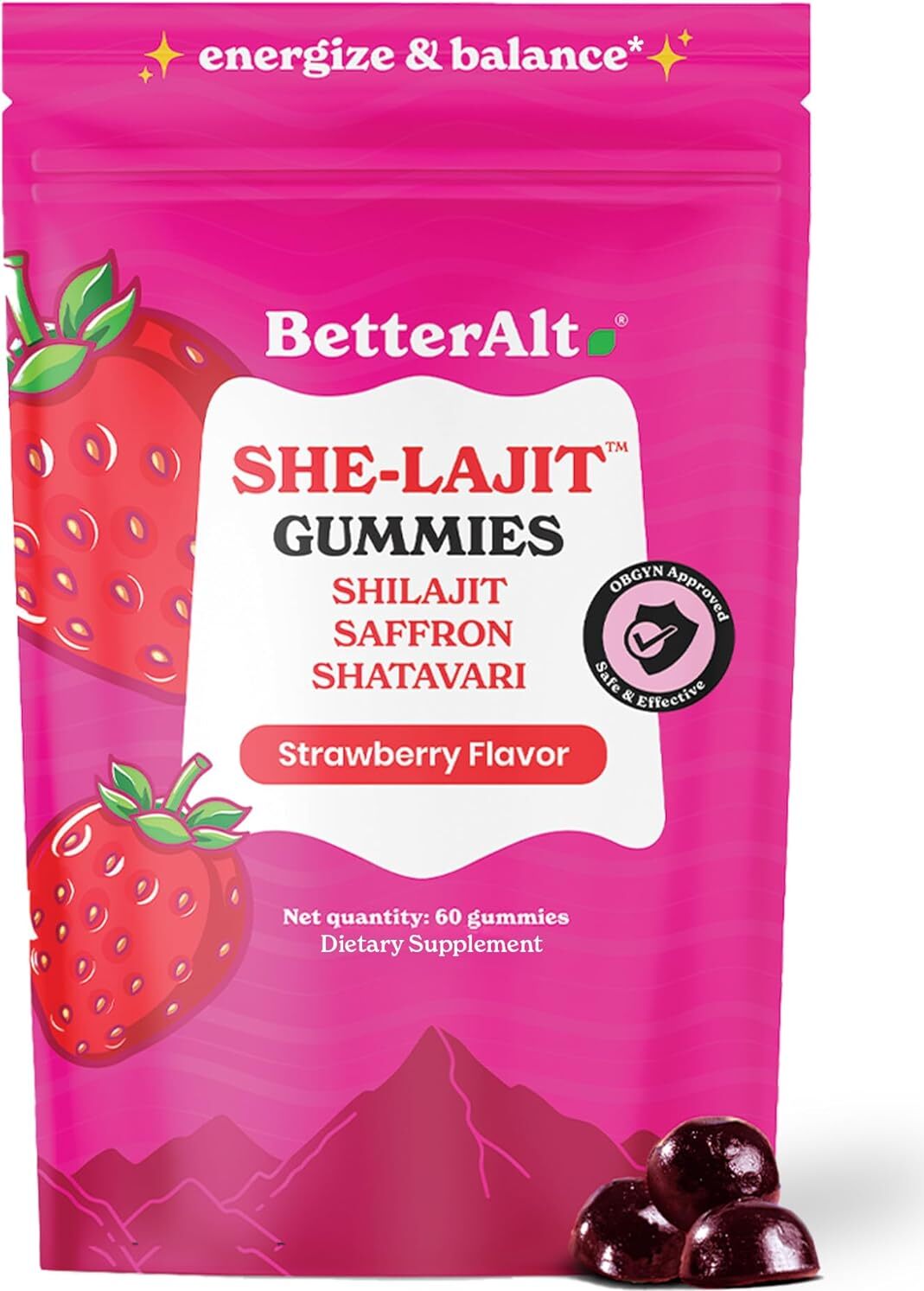 - Powerful Women’s Wellness Support – Backed by Nature & Science BetterAlt’s She-lajit Gummies are expertly formulated with Himalayan Shilajit, Organic Shatavari & Pure Saffron – a powerful trio known to support hormonal balance, energy levels, and female vitality. Approved by OBGYNs and designed to help women feel their best – naturally.