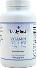 Body First D3 + K2 are fat soluble vitamins which assist in the absorption of calcium in the diet and play an important role in supporting a healthy calcium balance between the bone and vascular system.