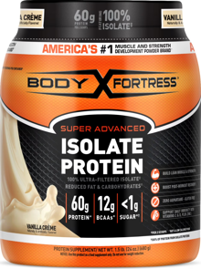 Go to StoreBody Fortress Super Advanced Isolate Protein is a blend of Whey, Soy, and Milk Protein Isolates with reduced amounts of unwanted fat and carbs. For adults, mix one (1) scoop to 6-8 ounces or two (2) scoops to 14-16 ounces of your favorite beverage. Super Advanced Isolate Protein can be taken before or after exercise, between meals, or before bed. Stir, Shake, or Blend for 20-30 seconds until completely blended. Use in conjunction with an intense daily exercise program and a balanced diet including an adequate caloric intake.