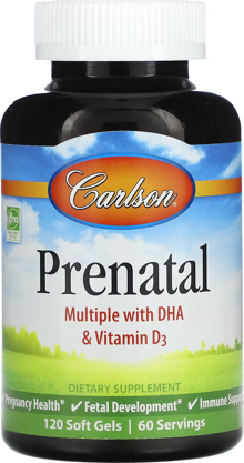 - Carlson Labs prenatal multiple with DHA from fish oil is prepared with selected choice nutrients including vitamins A, C, 100% natural-source vitamin E and selenium