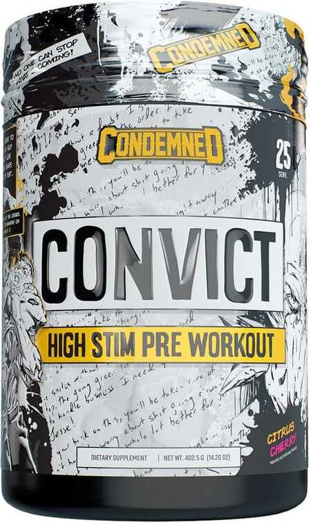 Convict Stim was created for the dedicated individual looking for an accelerated energy boost to hyper-drive them through their workout. Flip the switch and unleash the savage within. With blood engorged, swollen muscles, you're guaranteed extreme vasodilation. As workouts become grueling, self-inflicted tunnel vision activates and achieving gains will be your only focus. For the ultra athlete who needs a pre-workout resurgence, ConvictStim is your solution.