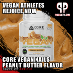Core Nutritionals adds Peanut Butter to Core VEGAN. 21g protein from pea and rice, enhanced BCAAs, digestive enzymes, and a creamer system for better taste. -