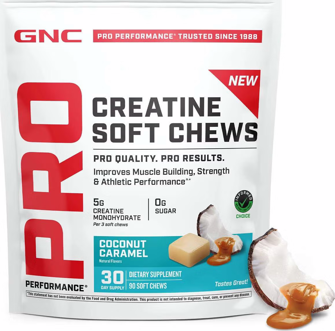 Shop GNC Pro Performance Creatine Soft Chews only at GNC GNC PRO PERFORMANCE - Creatine Soft Chews - Coconut Caramel - 30 Servings • Fuel Game-Changing Gains: GNC Pro Performance Creatine Soft...