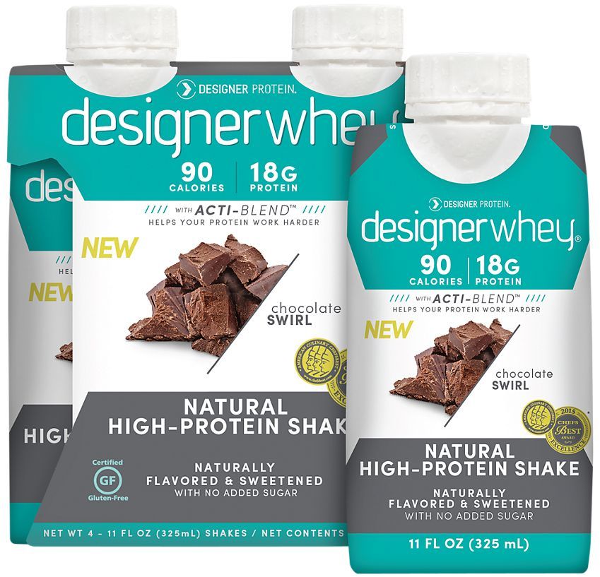 Smooth, delicious, and nutritious, our Designer Whey Ready-to-Drink Protein Shakes are designed with your active lifestyle in mind. They are packed with 18g of premium protein and offer an excellent source of calcium, vitamin-D, and B-vitamins - all for only 100 calories! Seize YOUR day!