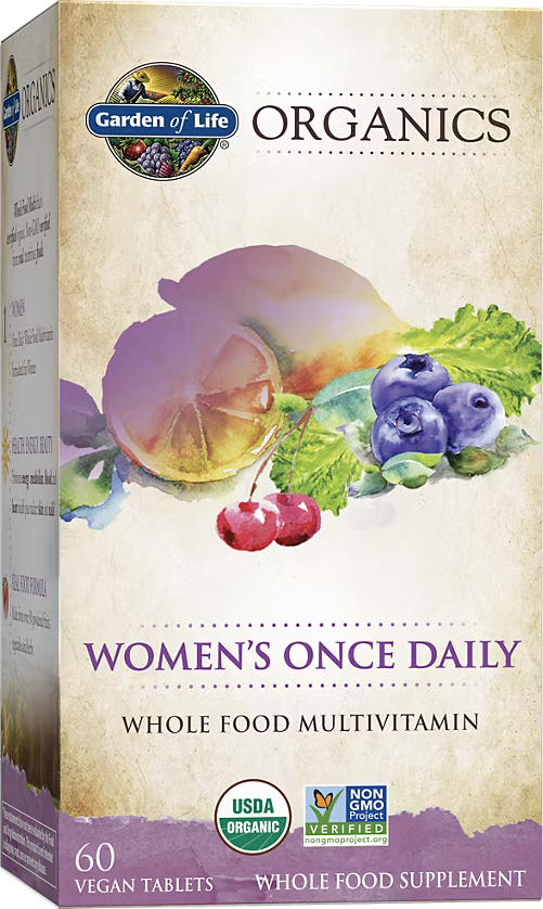 Women’s Once Daily is made from real organic whole food, including lemons, annatto, amla berry, holy basil and many more—providing perfect support for your demanding lifestyle—all in just one organic tablet daily.*