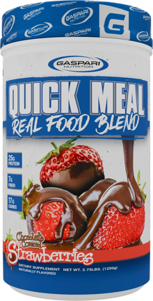 When you're body is hungry, it wants food. Gaspari Quick Meal delivers complete protein from beef protein isolate, instant egg whites and Greek yogurt protein. Complex carbohydrates from real food sources such as sweet potatoes and rolled oats, with organic fruit flavor systems sweetened with natural stevia. Gaspari Quick Meal is real food.- 25g Complete protein