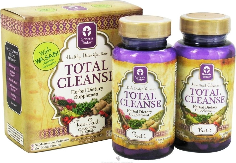 4Total Cleanse Description from Genesis Today 2 PART FORMULA: 60 Vegetarian Capsules in Each Bottle.