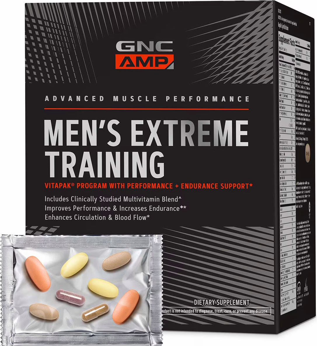 GNC AMP Men's Extreme Training Vitapak Program delivers the power of five science-based formulas to help you maximize your physical and mental intensity and get the most from your workout.