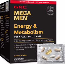 - Fire Up Your Metabolism & Focus On Your Goals: GNC Mega Men Energy & Metabolism Vitapak Program combines a clinically backed multivitamin, a proven calorie burner, and comprehensive wellness support^*.