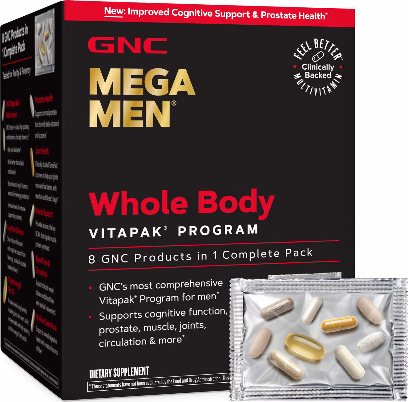 - GNC’s Best All-In-One Nutrition for Men: Whole Body Vitapak Programs deliver GNC's most-comprehensive solution with multivitamins, fish oil, and support for prostate, focus, joint, and heart health*.