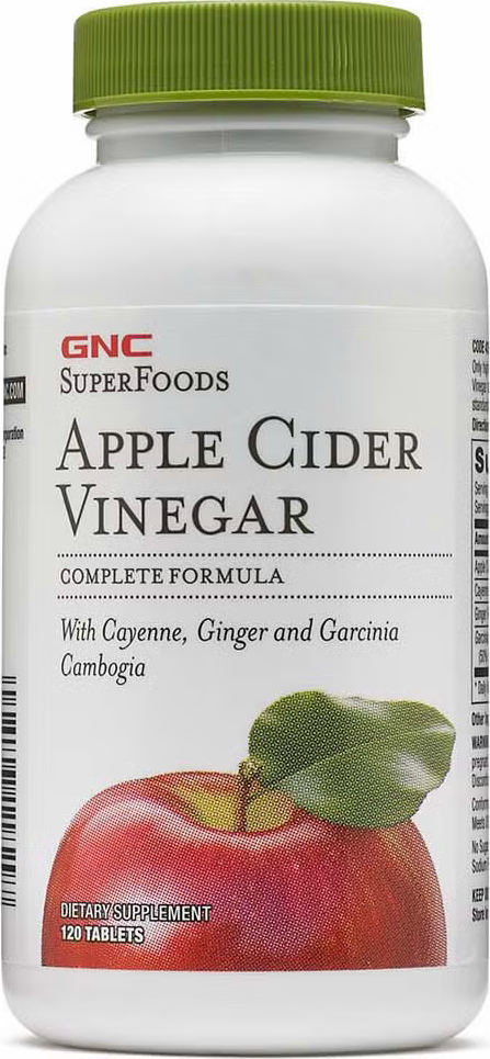 GNC Apple Cider Vinegar capsules are a dietary supplement that can be added to your weight management routine. Ingredients like cayenne and ginger powder in these apple cider vinegar supplements offer dietary support for healthy digestive tract function. Take two GNC SuperFoods Apple Cider Vinegar tablets daily, for use as a dietary supplement with a regular diet and exercise routine.
