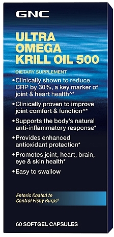 GNC UltraOmega Krill Oil features 500 mg of clincially proven Neptune Krill Oil. Krill are tiny crustaceans that are harvested from the cold waters of the Antarctic.