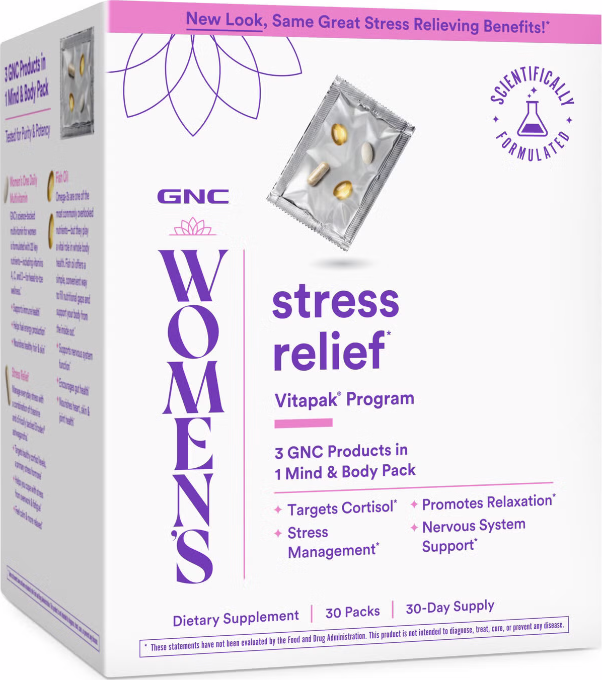 - START RELIEVING STRESS WITH VITAMINS AND MORE: Stress impacts every system of the body – so GNC Women’s Stress Relief Vitapak Program works to provide comprehensive nutrients plus science-backed support for stress*.