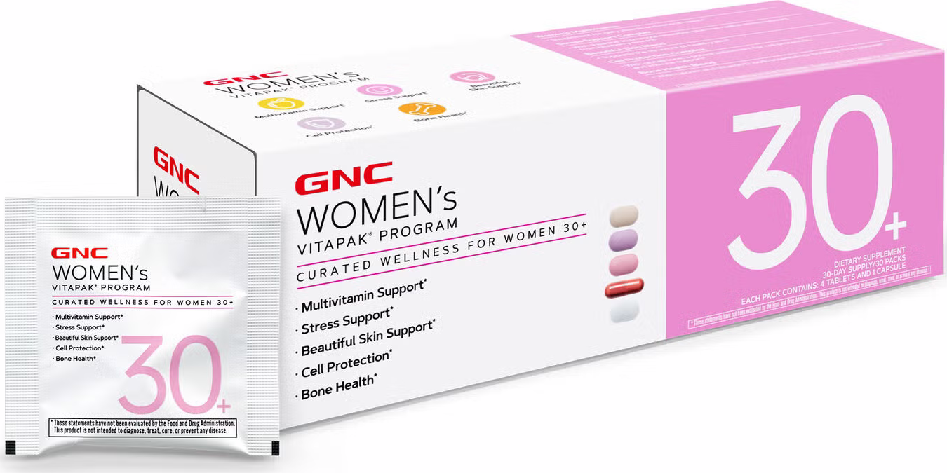 - 5-IN-1 NUTRITION FOR LIFE AFTER 30: GNC Women’s 30+ Vitapak Program is ready to welcome you into a whole new decade of wellness with 5 key supplements for women over 30 in every convenient, daily vitamin packet*.