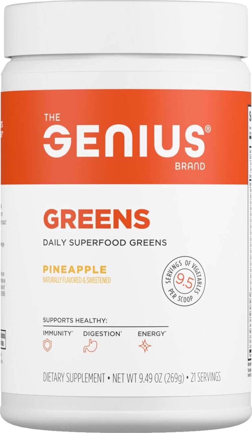 About this item Delicious Superfood Nutrition: Genius Greens by The Genius Brand is an easy and tasty source of antioxidants, calcium, dietary fiber, iron, potassium, and protein. This powder is...
