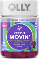 Olly Keep it Moving Plum Berry Description Olly - Gut Health • Digest Delightfully With Laxative Herbs Helps Alleviate Occasional Constipation Rhubarb, Prune & Amla Gluten Free Good to Go Join the...