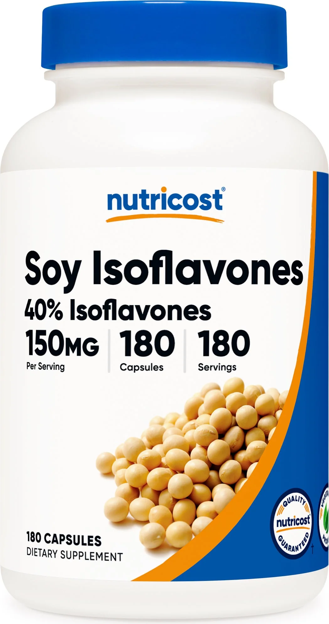 Nutricost Soy Isoflavones contains 180 "veggie" capsules per bottle. Each capsule contains 150mg of soy isoflavones. Isoflavones are naturally occurring plant compounds that are particularly...