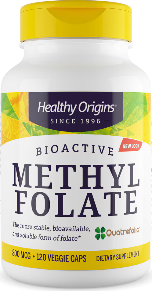 Healthy Origins BioActive Methyl Folate (featuring Quatrefolic) is the more stable, more bioavailable and more soluble form of folate. Traditional folic acid supplements are not biologically active and need to be converted to the metabolically active 5-Methyltetrahydrofolate (5-MTHF) form. This conversion is done through a multi-step process in the body where the enzyme Methylentetrahydrofolate reductase (MTHFR) plays a key role. Some individuals, due to their unique genetic patterns and expression, have polymorphic forms of this enzyme and do not produce adequate or effective MTHFR. Inadequate or ineffective MTHFR enzyme production makes the conversion of folic acid to active 5-MTHF very difficult.