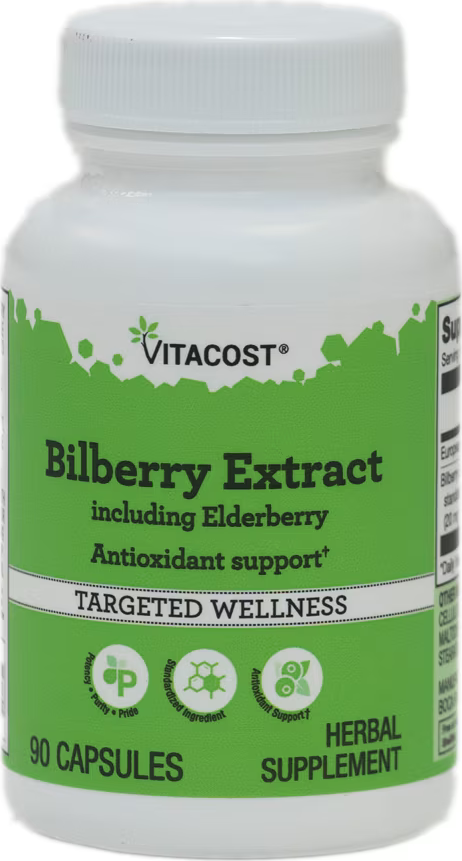 Bilberry Extract including Elderberry Description Unique combination formula featuring two antioxidant-rich berry extracts.* Now features smaller, easier-to-swallow capsules What is Bilberry...