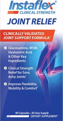 Instaflex Clinical Strength Joint Relief features a comprehensive, clinically studied combination of 8 ingredients designed to target the most common complaints associated with joint discomfort. Unlike other joint formulations, the benefits of Instaflex Clinical Strength Joint Relief are supported by a double-blind, placebo-controlled, human clinical trial conducted at a major university, which found that our powerful formula significantly reduced joint discomfort, improved flexibility, and increased mobility during daily activities. Our powerful 8-In-1 formula features glucosamine, MSM, Hyaluronic Acid, and Cayenne plus a combination of Turmeric, Boswellia, White Willow, and Ginger Extracts to deliver clinical strength relief in one comprehensive solution. Experience the soothing joint relief you deserve – backed by real clinical evidence so you can enjoy more confidence and freedom to do the activities you love.