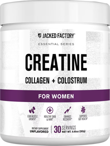 Jacked Factory Creatine for Women supports performance, recovery, and overall wellness with a premium blend of Creatine Monohydrate plus Grass-Fed Collagen & Colostrum. Each serving helps build lean muscle, enhance endurance, and support healthy hair, skin & immune function. Elevate your training, recover stronger, and nourish your body from the inside out.