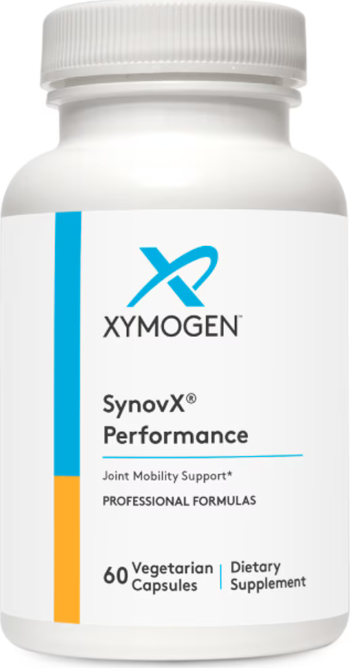XYMOGEN SynovX Performance Description Joint Mobility Support Supports Joint Mobility and Comfort Supports Healthy Synovial Fluid Supports Joint Integrity and Function Professional Formulas SynovX...
