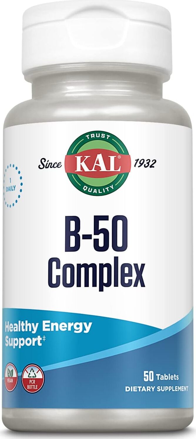 DIETARY SUPPLEMENT Vegetarian With Aroma Smooth Coating KAL B-50 Complex contains Aroma Smooth fresh minty coating to enhance your experience. B-Vitamins are intended to provide nutritive support...