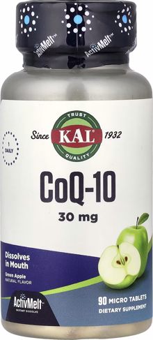 CoQ-10 is intended to provide nutritive suport for normal cardiovascular health. The KAL softgel provides increased bioavailability , along with naturally-occuring tocotrienols and gamma orzanol. 273% more absorption when compared to powdered CoQ-10.