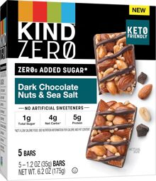 KIND ZERO Added Sugar Bars are a tastier way to enjoy keto friendly snacking. Includes one, 6.2-ounce box of five individually wrapped nut bars with a combination of 4g net carbs, 5g protein, 1g total sugar and 0g added sugar* per serving. Each nut bar is made with premium, whole ingredients you can see and pronounce, and has the perfect balance of sweetness. Every bite brings together nutrient-dense almonds and peanuts, rich peanut butter, plus chocolatey top drizzle and bottom coating for uncompromisingly delicious taste. What you won’t find is artificial sweeteners or sugar alcohols. Keep our ZERO Added Sugar KIND Bars on hand for an easy mid-morning snack food. Grab a keto friendly snack bar as a quick bite between meetings or errands. Enjoy as part of your pre workout routine. For mornings, snack time or any time, make KIND ZERO Added Sugar Bars a delicious, nutritious addition to your keto friendly journey.