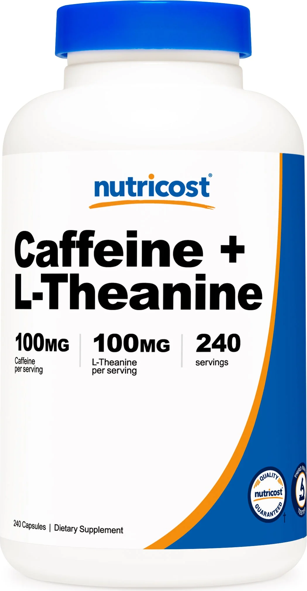 Nutricost Caffeine + L-Theanine Description 100 mg of Caffeine Anhydrous Per Capsule 100 mg of L-Theanine Per Capsule Non-GMO • Gluten Free • Soy Free Made in a GMP Compliant, FDA Registered...