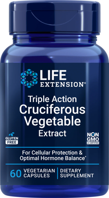 Life Extension Triple Action Cruciferous that help maintain healthy hormone levels. Maintaining optimal hormone balance is essential to any anti-aging strategy. Triple Action Cruciferous Vegetable Extract combines these plant extracts into the most comprehensive food-based, plant compilation for cell protection yet
