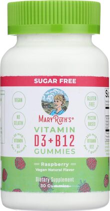 - Vitamin D3+B12 Gummies, Raspberry, 30 ct