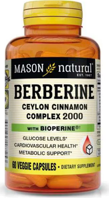 Benefits: Mason Natural Berberine Ceylon Cinnamon Complex 2000 with Bioperine is a dietary supplement that may support glucose metabolism, cardiovascular health, and weight management.
