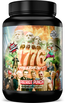 Did we mention the artwork? Showcasing America’s presidents and cultural icons, 1776 is a tribute to heavy lifting, hard work, and the relentless pursuit of greatness. This is the pre-workout for those who train with purpose, push past limits, and live a Merican lifestyle loud and proud. No compromises. No shortcuts. Just 100 scoops of freedom-powered intensity designed to help you outwork, outlift, and outperform the competition. 1776 — Let Freedom Lift.