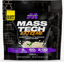 MuscleTech offers a range of Mass Tech weight gainers, providing different levels of calories, carbohydrates, protein, creatine, and other good add-ons!