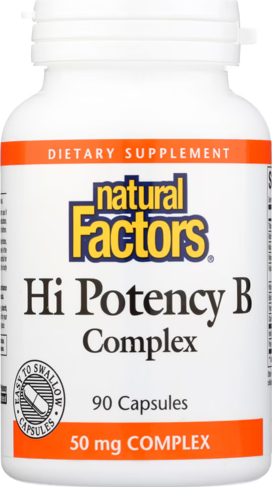 Hi Potency B Complex Description from Natural Factors The B vitamins (including 800 mcg of folic acid) in Hi Potency B Complex work together to metabolize proteins, carbohydrates and fats, and...
