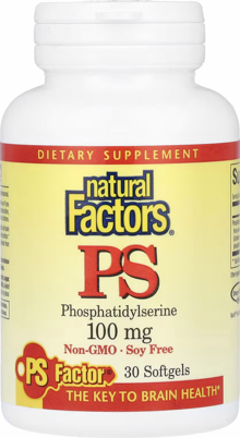 Phosphatidylserine (PS) is a natural nutrient found in the brain. Phosphatidylserine is the major phospholipid in the brain where it plays a major role in determining the integrity and fluidity of cell membranes. Healthy cell membranes support healthy brain functions such as memory, focus and clarity. Natural Factors is naturally derived from soy phospholipids. In clinical studies, plant-based PS is just as effective as animal-based PS with none of the concerns associated with prion diseases (i.e. Mad Cow disease).* Clinical studies on humans verify PS safety.*