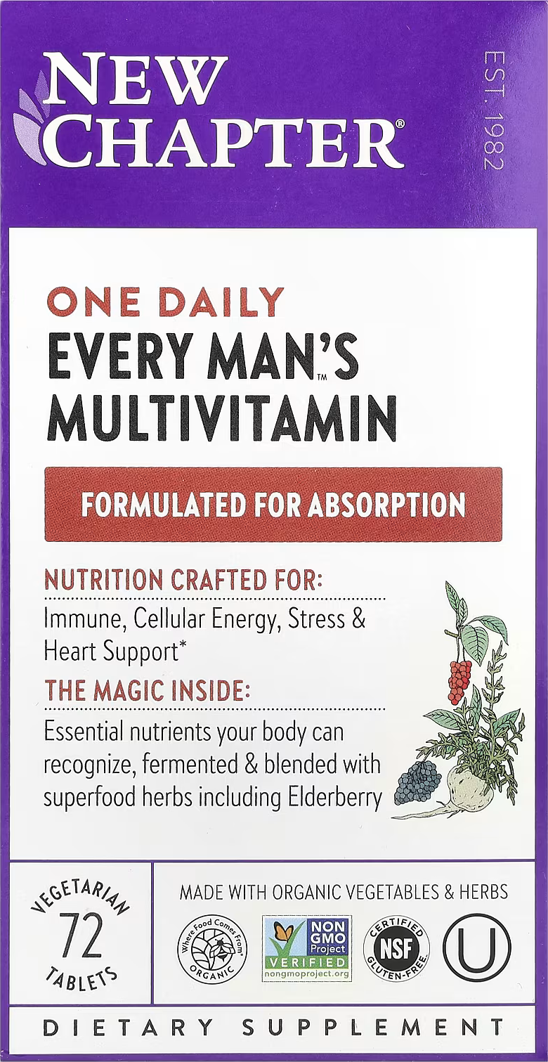 55+ Every Man's One Daily Multi Description from New Chapter Vitamins, Minerals & HerbsExpertly formulated to support the holistic health needs of men 55+, including healthy mood and brain...
