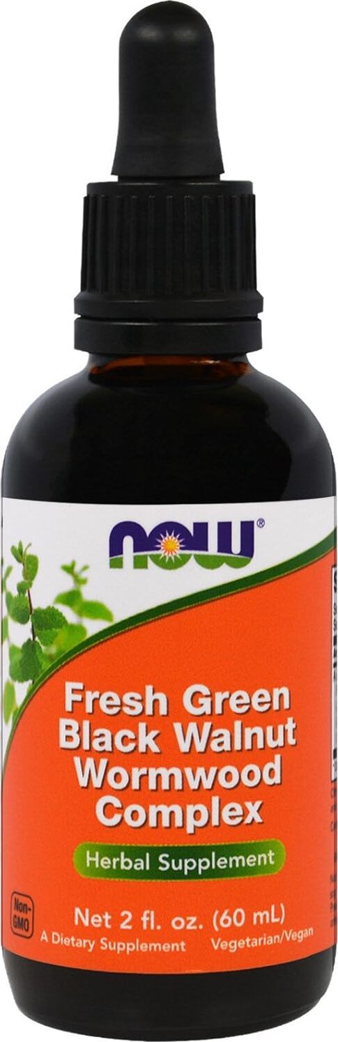 NOW Fresh Green Black Walnut Wormwood Complex is a natural remedy and preventative powerful extract for fighting parasites in the digestive tract. Green Black Walnut Wormwood Complex has been used for centuries as an herbal tonic to promote healthy microbial activity. Fresh (green) black walnut hull extract, Wormwood herb, and Clove bud extract work synergistically to kill or disable and remove parasitic worms and other harmful organisms in your system. NOW's complex combines the three traditional herbal extracts into one liquid supplement. Cleanse your gut with NOW black walnut wormwood complex and feel better!