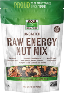NOW's Raw Energy Nut Mix can help restore your energy levels with a tasty and nutritious combination of raisins, walnuts, pecans, almonds, pumpkin seeds and cashews. Every serving is a dose of renewed energy!