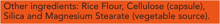 Other Ingredients: Rice Flour, Cellulose (Capsule), Silica, And Magnesium Stearate (Vegetable Source). Contains No Sugar, Salt, Yeast, Wheat, Gluten, Corn, Soy, Milk, Egg, Shellfish Or Preservatives. |