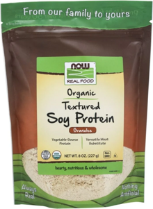 NOW Real Food Organic Textured Vegetable Protein is a perfect vegan alternative to meat. This unflavored and versatile vegetable protein is non-GMO and perfect for veggie burgers, chili, stews, soups, casseroles, and more. Organic Textured Vegetable Protein Crumbles are made entirely from organic soybeans with no chemical additives and are an excellent source of protein.