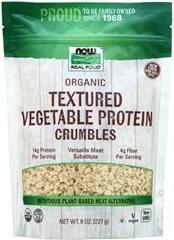 NOW Real Food Organic Textured Vegetable Protein is a perfect vegan alternative to meat. This unflavored and versatile vegetable protein is non-GMO and perfect for veggie burgers, chili, stews, soups, casseroles, and more. Organic Textured Vegetable Protein Crumbles are made entirely from organic soybeans with no chemical additives and are an excellent source of protein.