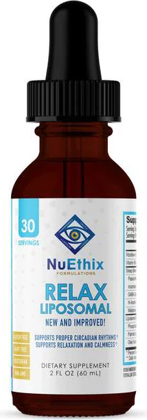 Go to StoreNuEthix Formulations RELAX Liposomal is a fast absorbing stress and sleep support formula designed to help calm the mind, balance mood, and promote restful sleep. Using advanced liposomal delivery technology, RELAX ensures superior absorption and faster results for anyone struggling with tension, stress, or occasional sleeplessness.