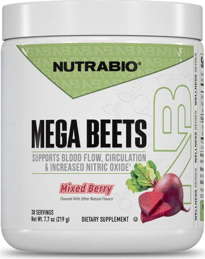 NutraBio Mega Beets is an advanced beet-based superfood designed to support healthy blood flow, circulation, and nitric oxide production for total-body wellness. Each serving delivers organic beet root powder combined with patented NO3-T nitrate technology to help support efficient oxygen and nutrient delivery throughout the body. This stimulant-free formula is built for daily use to support endurance, cardiovascular health, and overall vitality.