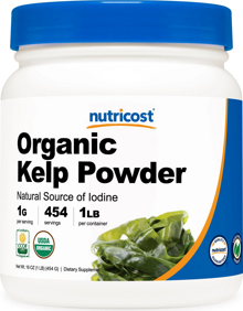 Nutricost Organic Kelp Powder (1 LB) contains 91 servings. Each serving contains 5 grams (convenient serving scoop include) of Kelp. Many people do not know it, but Kelp is a natural source of iodine. Each serving of our Organic Kelp powder contains 3250mcg of iodine. Nutricost's Kelp powder is certified USDA Organic, is vegetarian, non-GMO, and gluten free. Only What You Need, Nothing You Don't! We've simplified our entire philosophy down to that single concept. This motto is what drives us to find the highest quality sources of the purest ingredients for each supplement we offer. From single ingredients to our simple formulations for targeted effects, each of our supplements stays clear and simple with what they provide.