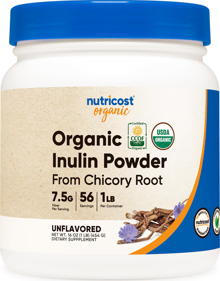 Nutricost's Organic Inulin Powder is certified USDA Organic and contains 1lb of powder in every bottle. It is a fantastic source of fiber, containing 7.5 g of fiber in each serving and is often used as a prebiotic as well.